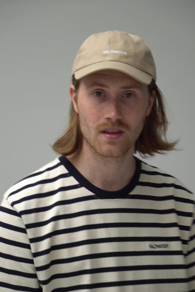 Die sandfarbene Base Cap ist ein klassisches 6-Panel-Modell aus hochwertigem Twill-Gewebe. Die zeitlose Kopfbedeckung ist zu 100% aus Bio-Baumwolle und wird in Europa gefertigt. Der dezente SALZWASSER-Schriftzug auf der Vorderseite rundet die Cap stilvoll ab.
