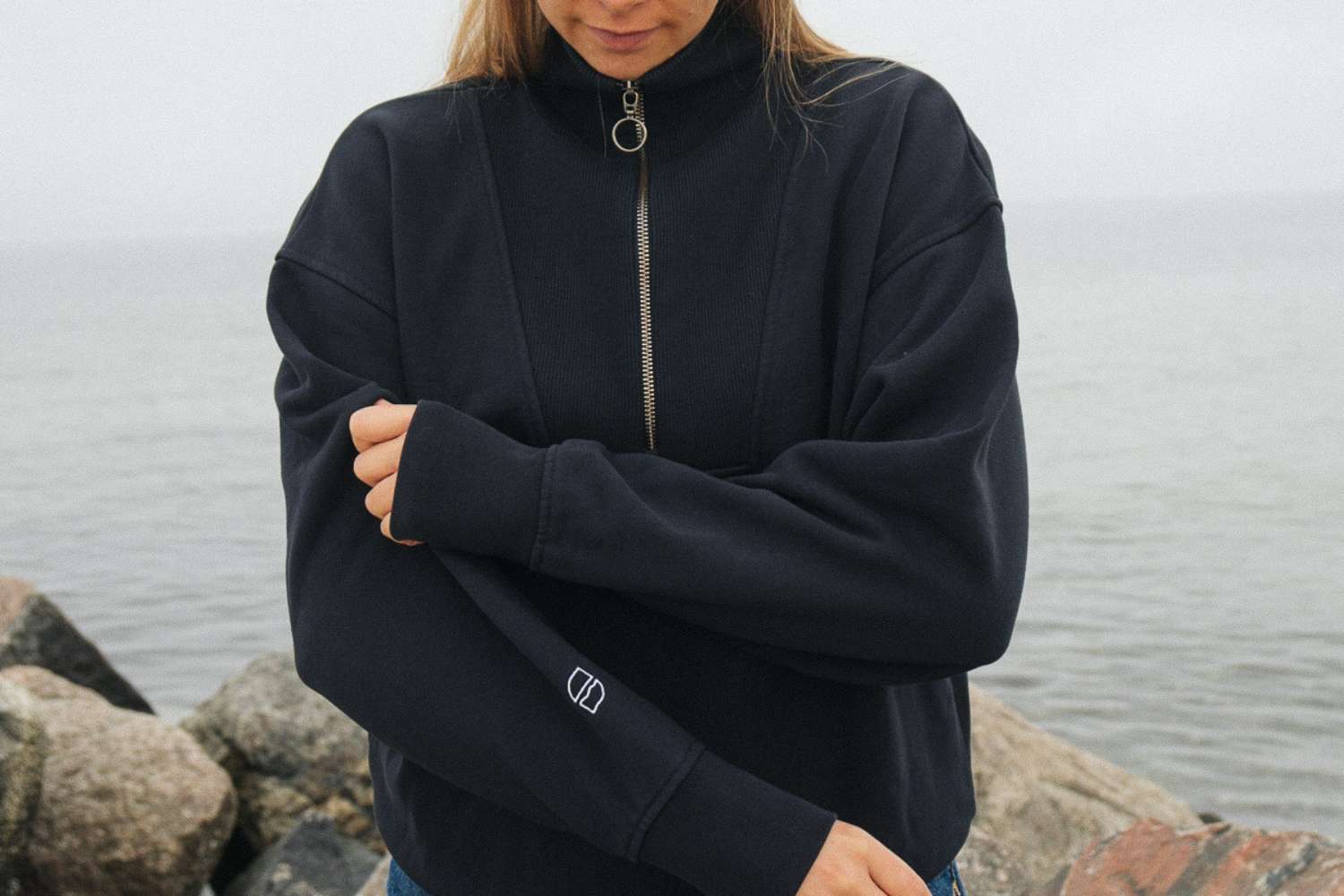 BRIT ist ein lockerer Half-Zip Sweater für Damen. Kennzeichnend für das Sweatshirt ist ein halber Reißverschluss mit geripptem Stehkragen. Durch die 100% erstklassige Bio-Baumwolle und das 480 gsm schwere Stoffgewebe aus French-Terry hat der Half-Zip ein sehr angenehmes Tragegefühl. Ein besonderes Merkmal ist das gestickte Logo am rechten Ärmel. Hochwertige Rippbündchen an den Ärmeln und am Saum perfektionieren den Damen Half-Zip Sweater bis ins letzte Detail.