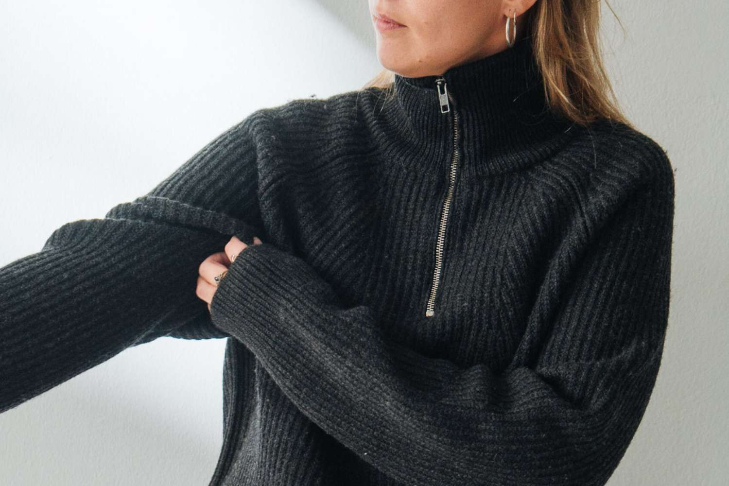 Das beste Material für Pullover: weich auf der Haut, warm am Körper. Feinste Merinowolle ist nicht nur geruchsneutral, sondern auch atmungsaktiv. So kannst du den Troyer ganzjährig tragen.