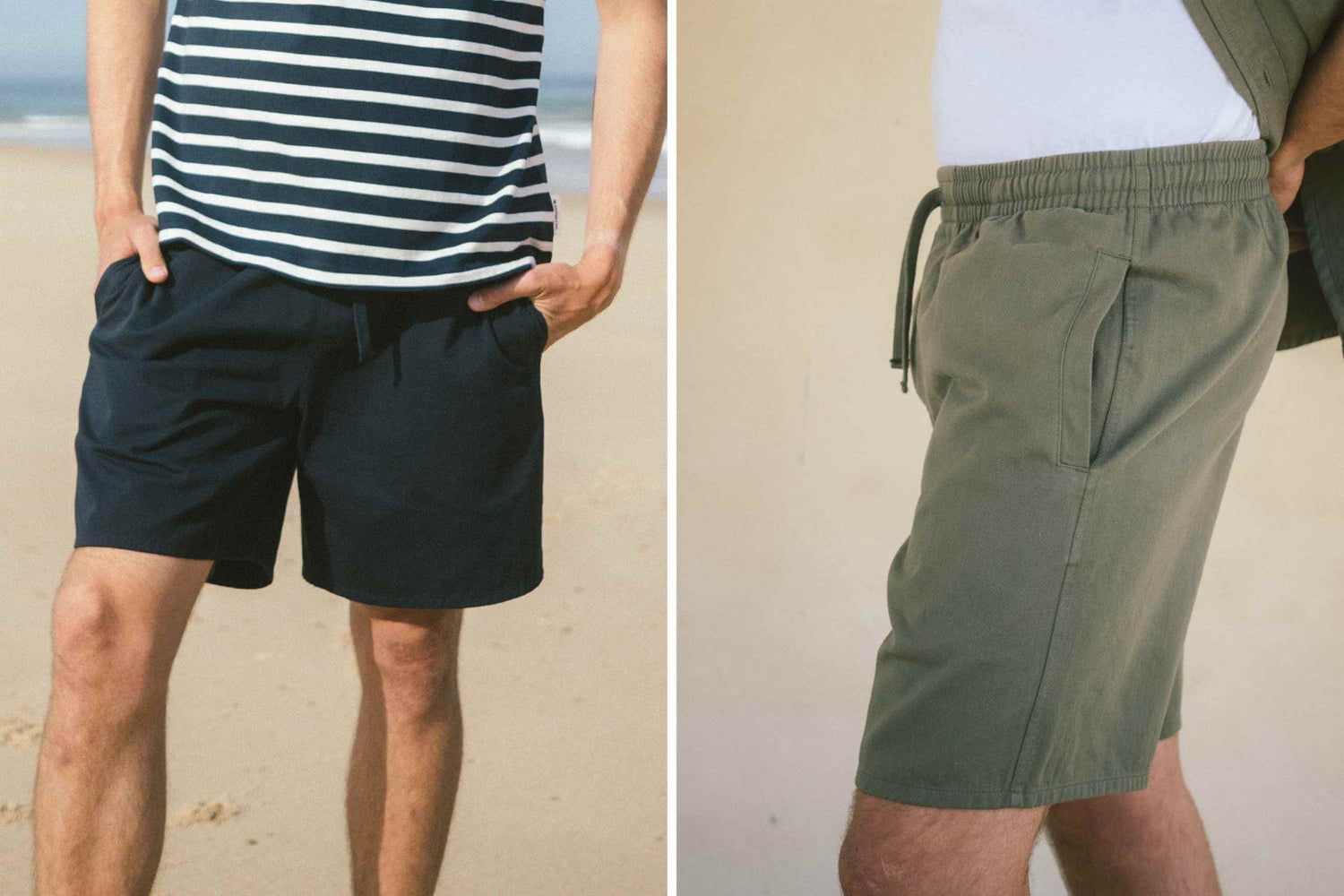 RIA ist eine hochwertige Walkshorts in Olivgrün. Die kurze Hose ist in bester Qualität aus Bio-Baumwolle hergestellt. Die kurze Shorts hat einen Bund mit Kordel, eine hintere Tasche und zwei Seitentaschen. Die Shorts ist locker geschnitten.