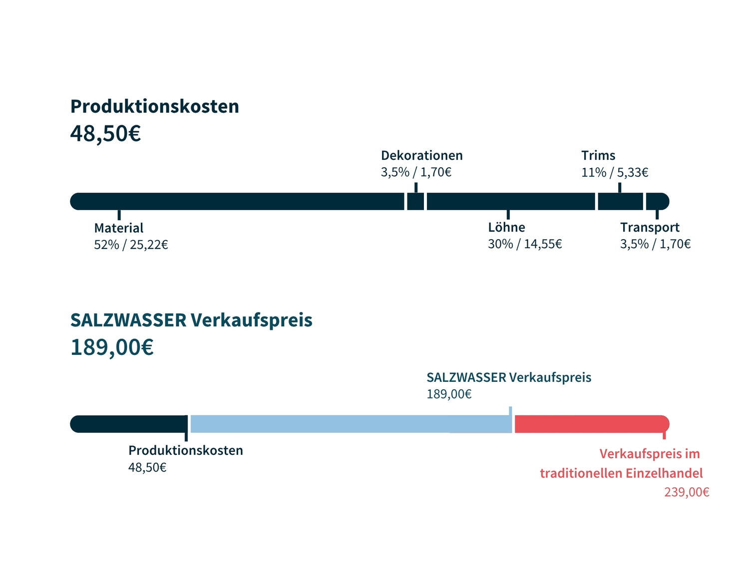 Seit 2019 bauen wir in einem kleinen Team in Hamburg mit viel Leidenschaft eine Bekleidungsmarke auf. Wir haben SALZWASSER mit dem Anspruch gegründet, beste Qualität mit höchster Nachhaltigkeit zu verbinden - beides zusammen hat seinen Preis. Nachhaltig bedeutet neben der Herstellung dann vor Allem auch, dass du lange Freude an deinem Kleidungsstück hast und es möglichst häufig trägst. So rechnet sich der Kauf des Produktes für dein Portemonnaie, und für die Umwelt. Die Langlebigkeit unserer Produkte steht deshalb für uns an oberster Stelle. Für den Fall, dass mal etwas schiefgeht, sind wir jederzeit erreichbar.